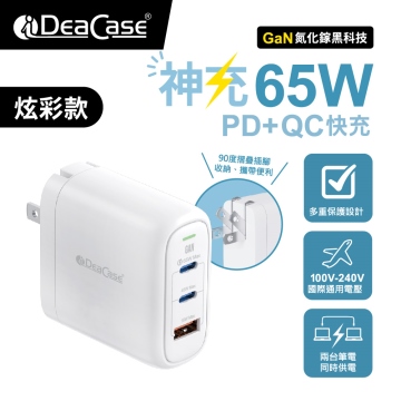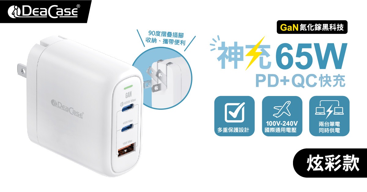G65A神充炫彩款 氮化鎵65W全電壓高速充電器2C1A 白