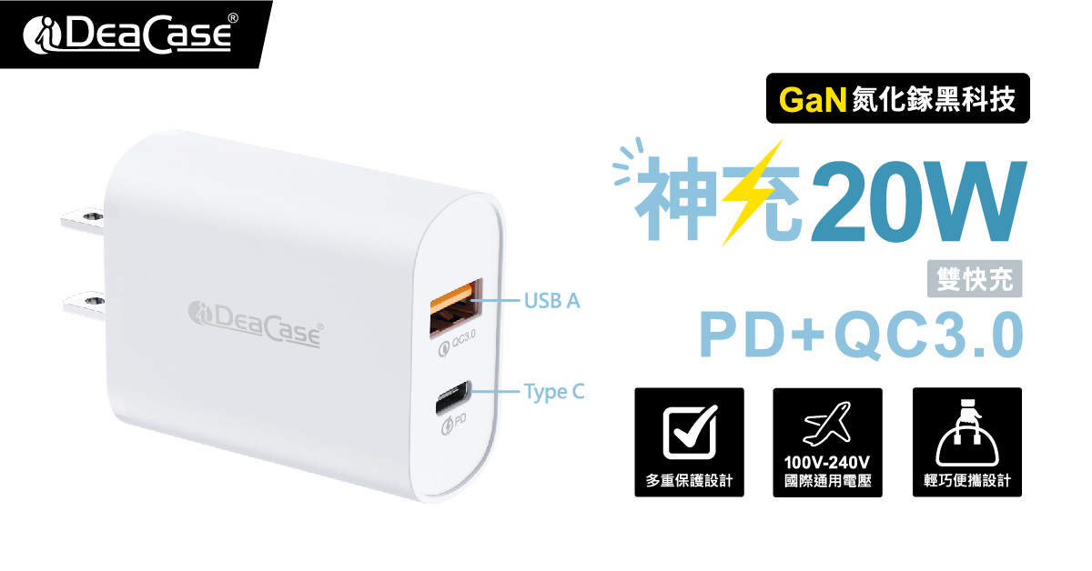 G20神充20W 全電壓高速充電器1A1C 白