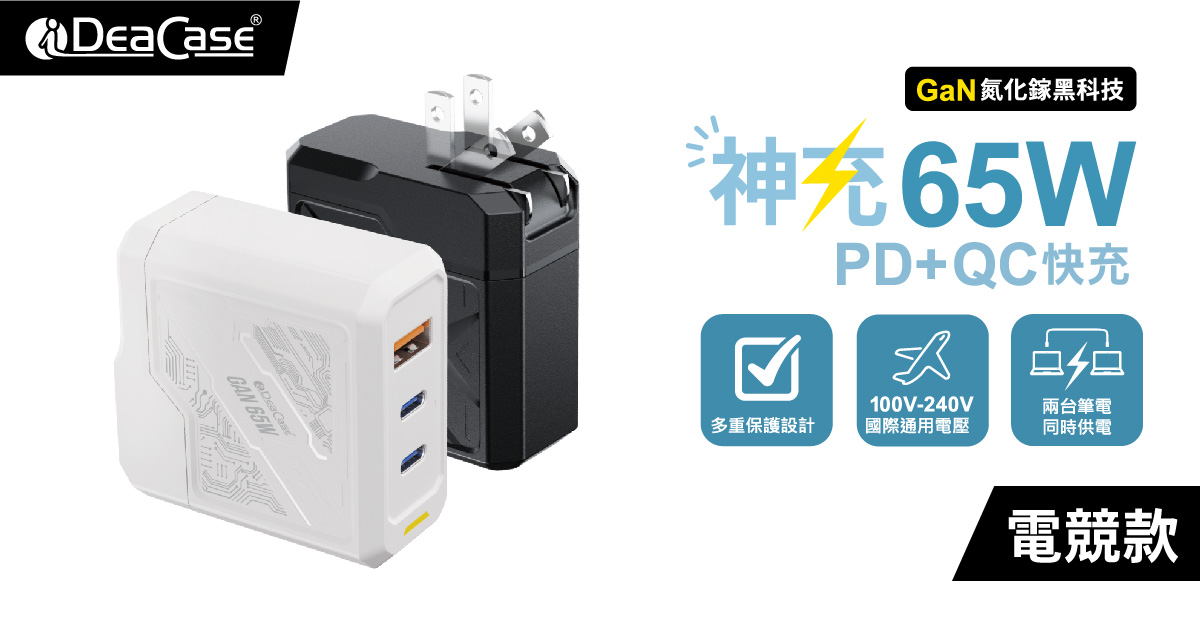 G65B 神充電競款 氮化鎵65W全電壓高速充電器2C1A 黑