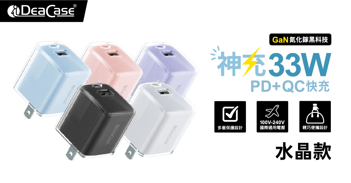 G33神充水晶款 氮化鎵33W全電壓高速充電器1A1C 馬卡黑