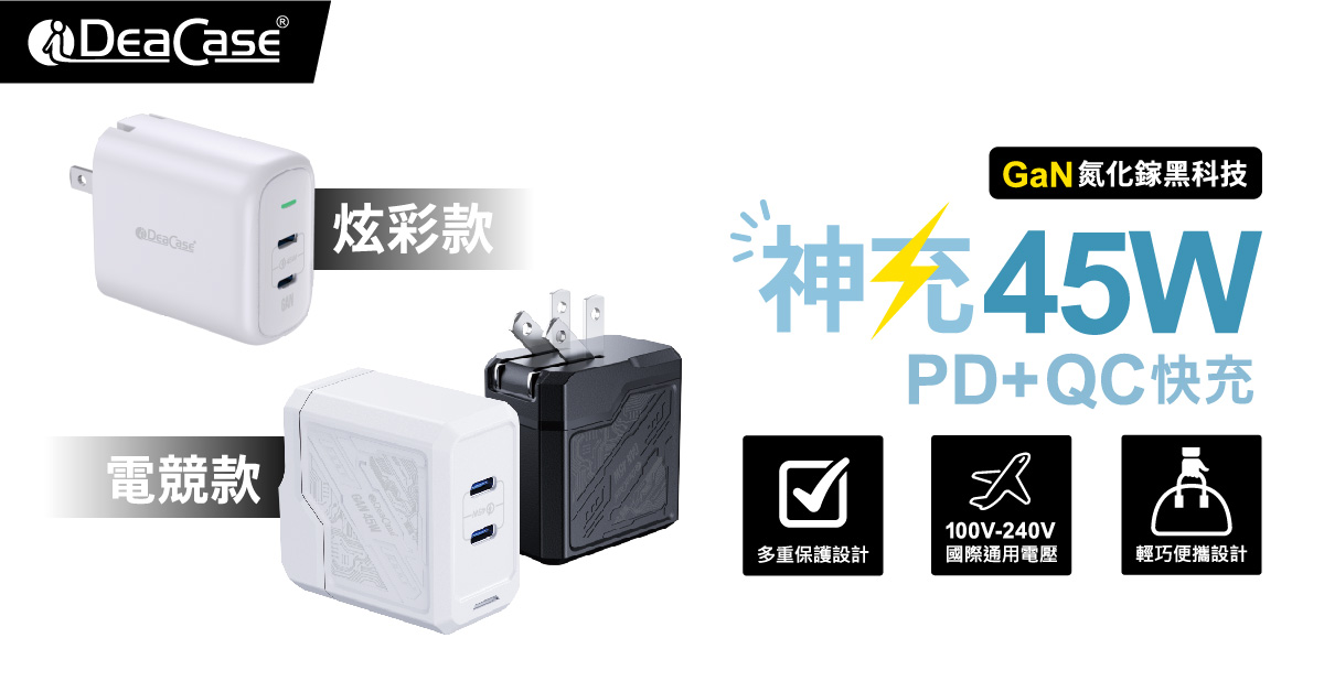 G45B神充電競款 氮化鎵45W全電壓高速充電器2C 黑