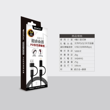 1.多功能四合一充電+傳輸資料線,4種接口任意變換